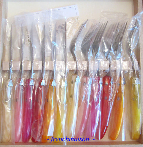 CLAUDE DOZORME Laguiole French 6 STEAK KNIFE + FORK Berlingot Luxe Gift Box Set