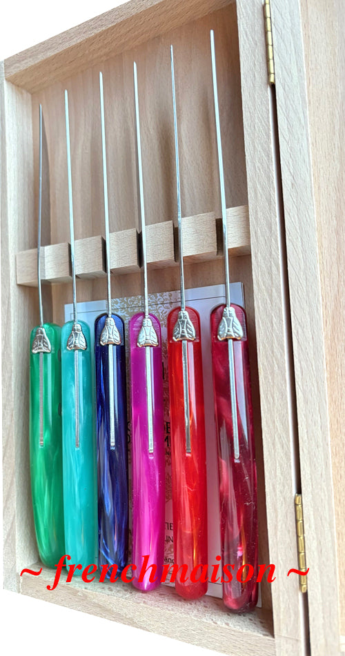 CLAUDE DOZORME Laguiole French Multicolor 6 STEAK KNIFE Set Gift Box