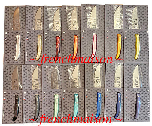 This listing is for one lovely Berlingot Multi PARIS Charcuterie & Cheese Knife from Claude Dozorme with high-quality stainless steel and colorful handle made of natural colored synthetic material.
